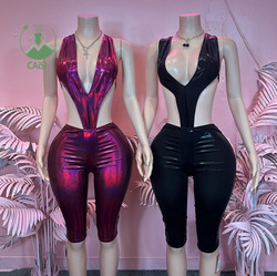Nuevos conjuntos sexis para mujer, monos con cuello en V, pantalones recortados ajustados de cintura alta, conjunto de 2 piezas para mujer