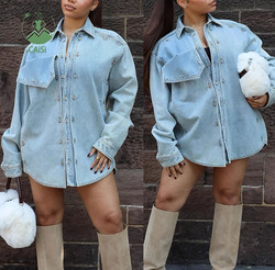Chaqueta vaquera informal para mujer, abrigo suelto con botones de retazos, Top vaquero de manga larga, ropa de calle, camisas vaqueras, ropa de mujer
