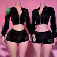 Женский комплект из двух предметов, комплект из двух предметов с шортами и длинным рукавом, со стразами, куртка на молнии и шорты на молнии, костюм из двух предметов, осенне-зимняя одежда