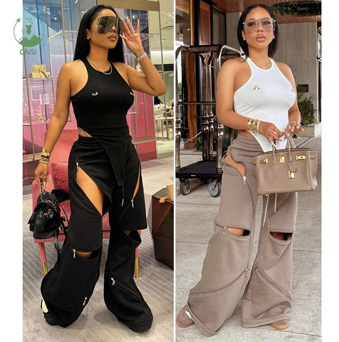 Модные свободные прямые расклешенные повседневные брюки с несколькими карманами на молнии свободные спортивные брюки для женщин