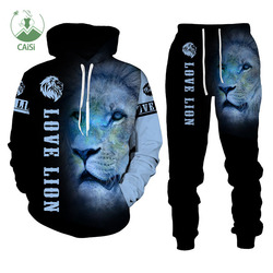 Conjunto de Duas Peças de Roupa Masculina Personalizada Agasalho da Moda com Calças de Moletom e Capuz com Estampa de Leão 3D Fatos de Corrida Esportivos Casuais para Homem