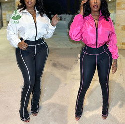 Novos Conjuntos Femininos de Duas Peças com Listras Laterais, Conjunto Casual de Moletom com Jaqueta com Zíper e Calças Jogger
