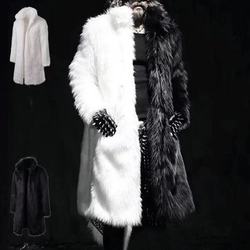 Casaco de pele punk rock com capuz, para inverno, masculino, jaqueta longa, preta ou branca, para patchwork, casaco de pele