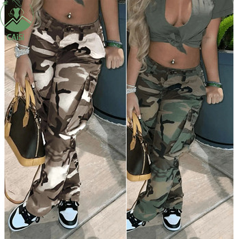 Calças Cargo Casuais Femininas Estampadas Camufladas com Zíper e Bolso, Cintura Alta, Elásticas, Estampa Completa, Tamanhos PP-3GG