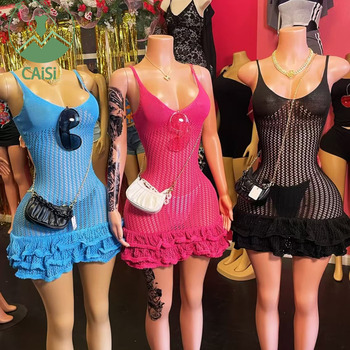 Vestido Sexy de Crochê para Verão Moda 2024, Vestidos Justos com Costas Abertas, Vestidos de Crochê para Praia com Alças Finas